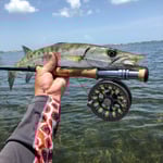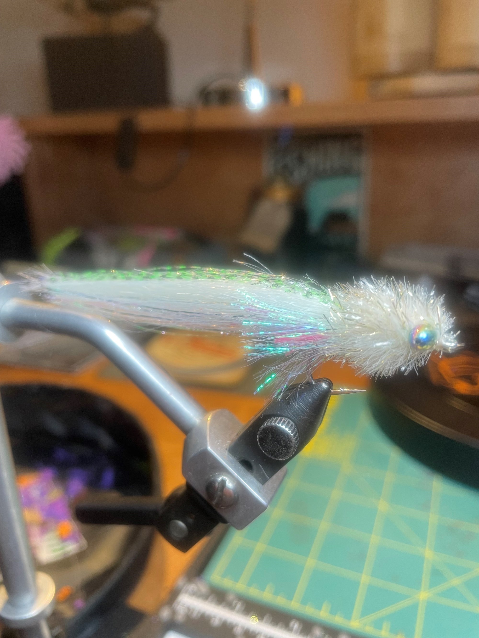 Deadly on Smallmouth ! I named this fly after Matlacha, Florida, a very fishy small town located on the Gulf of Mexico in SW Florida, where I have fished many times. After creating this fly at my tying desk in Indiana, Matlacha, FL is where it was first tested on fish. It came through in a big way, especially on Snook, Sea Trout, Pompano, Jacks, even Tarpon and Cuda, but it mostly gets a full time workout on Smallmouth, Largemouth, White Bass and Gar. I’ve literally landed over 1,000 fish on this fly from Saltwater to freshwater. A perfect crossover baitfish fly from fresh to Saltwater! It’s tied on a Gamakatsu SC 15 saltwater hook, perfect size hook for both bass and Saltwater. It weighs nearly nothing with the bead chain eyes, so you can cast it a mile, it’s roughly 3.5 inches long, it’s visible from a good distance to both the angler and the fish, it shows up very well in stained water, due to its’ polar flash tail, and the pink glow in the dark gill. It rides up right with the hook point down, even when tied with small dumbbell eyes. The polar flash tail sways back and forth on the retrieve and bulks up on the pause. Many times you will actually see the fish eat this fly since the fly is so visible throughout the retrieve, which is way cool. The bead chain gives the fly a slow to medium sink rate, this fly does sink and does not float. Put the fly on an intermediate/ sink tip to get the fly down towards the bottom if needed.