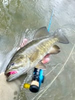 Tied on an extra strong # 1/32oz Voo Doo jig head, with a very lively tail. This little jig crushes White Bass, Crappie, Smallies and Largies ! Grab a few, the White Bass will be running soon in April 2025 through May. This fly can get down deep if needed as well. These fish love Pink, and these flies are very rugged and have a long-life span!